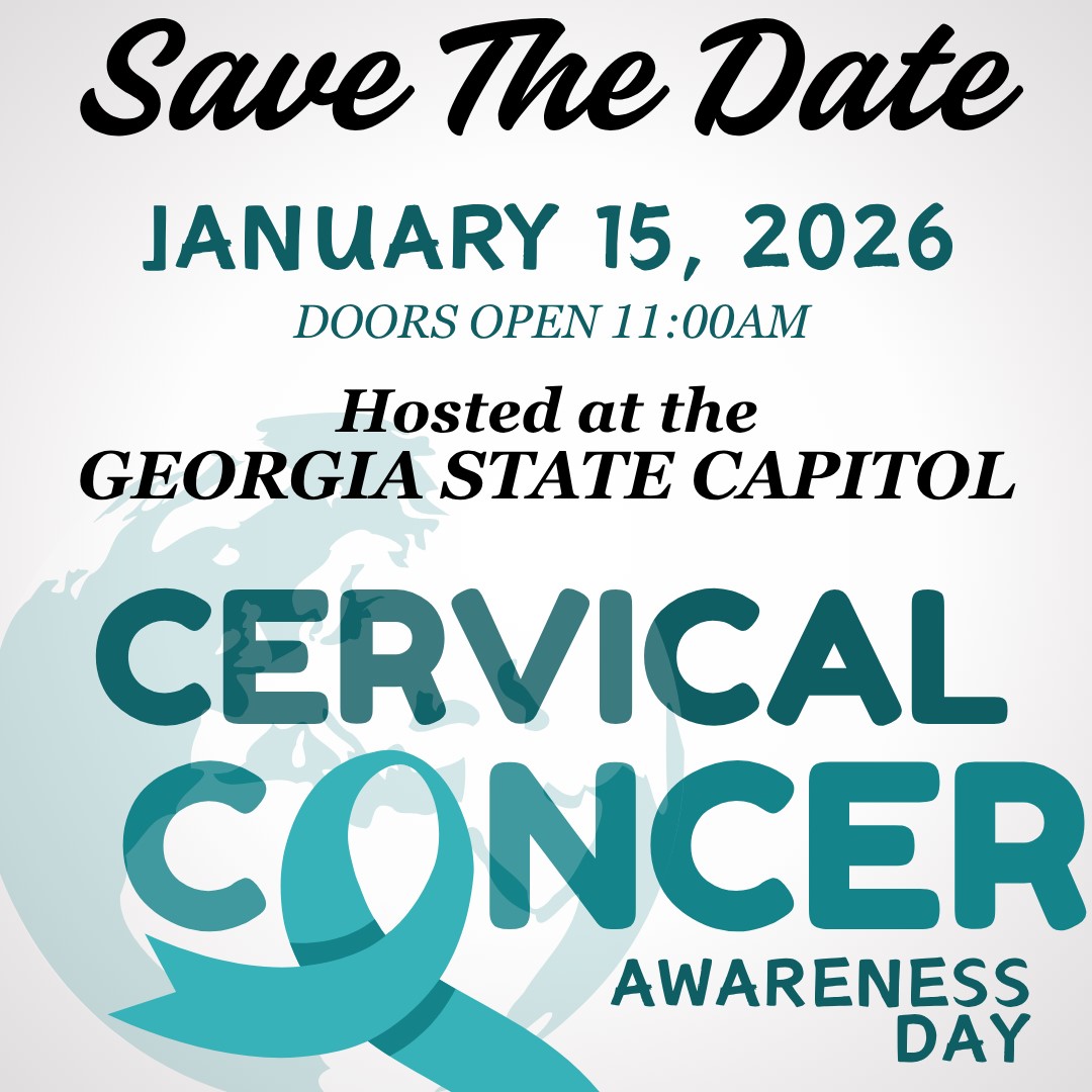Join us on Thursday, January 15, 2026 for the 9th Annual Georgia Cervical Cancer Awareness Day. Join State Representative Stacey Evans, legislators, and other advocates at the Capitol for Eliminating Cervical Cancer Advocacy. A virtual option is also available and you will receive the link upon registration.
