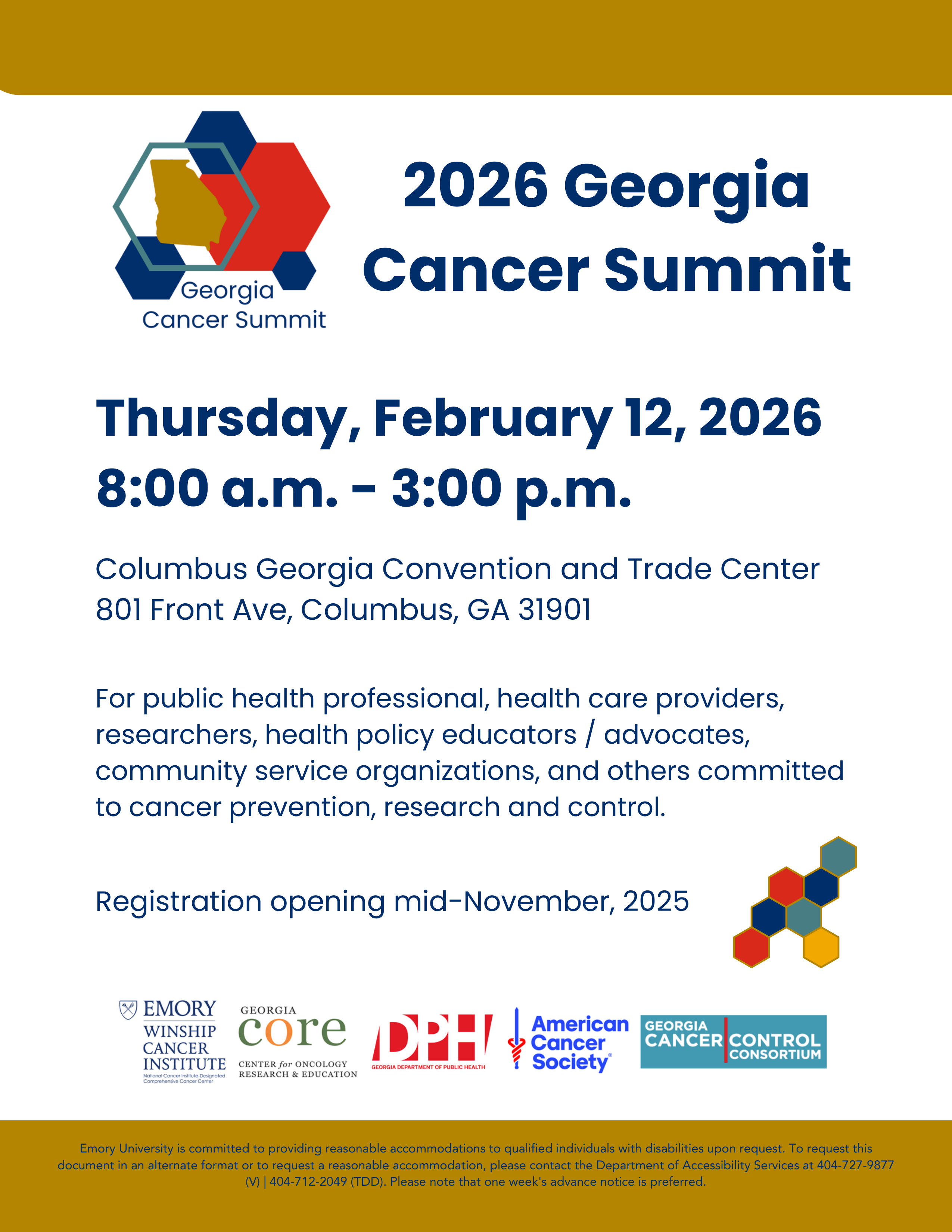 Please join us and other cancer professionals across the state of Georgia for the 2026 Georgia Cancer Summit!